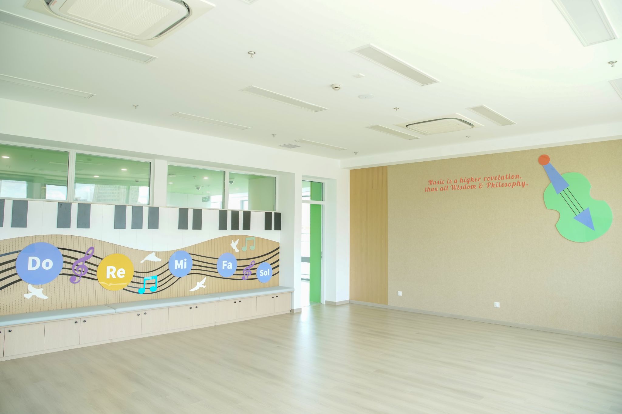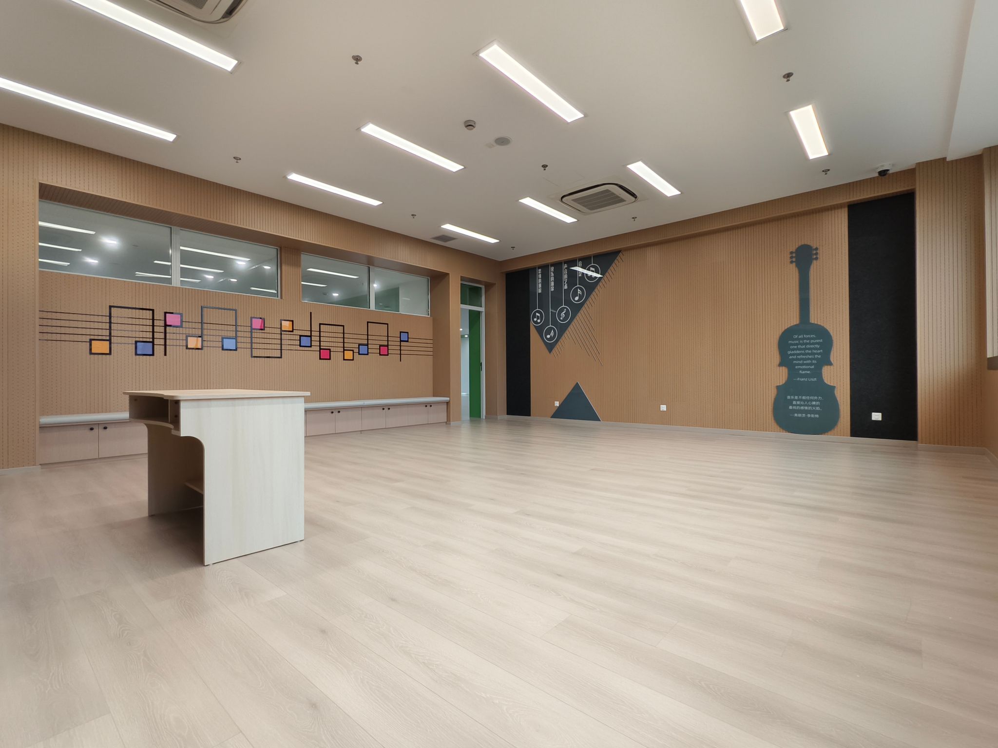 Music and Drama Center is a comprehensive teaching place integrating music, dance and theatre education. There are seven music classrooms, three dancing studios, one black box, three rehearsal rooms, 20 professional piano rooms and one auditorium. Many international art exchanges, municipal art competitions and school art activities have been held here, which is also an important exhibition venue for our achievements of art education. There is a perfect music curriculum system, complete teaching facilities and an excellent teacher team of about 15 people. There are 30 optional courses in music and more than 20 art clubs with a total number of nearly 800 students each year.