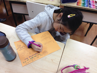 The theme for the month of November is appreciation. G4 students made appreciation cards during P&B class. Each student put his or her name on the front side of a piece of paper and then passed the piece of paper to others. Meanwhile, other students needed to write their comments on the back. Students can learn to be more appreciative and be nice to each other.