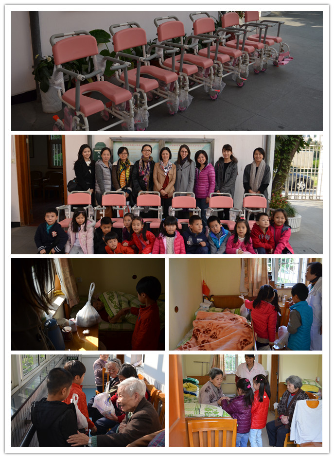 On Tuesday, November 19th, two students and one parent from each first grade class, along with Ms. Bao, Ms. Zhang from class 1(2), and Ms. DiEgidio from 1(3) visited the Chang Qiao No. 2 Nursing Home in the local community near SHSID. The reason for their visit was to spend time with the senior citizens that live there and to donate gifts that were purchased with the funds collected from the recent charity fair. Each resident of the home received a goody bag of personal hygiene items. Additionally, SHSID was able to purchase six specially shaped, water-resistant chairs with wheels that the caretakers can use to help the senior citizens shower and do other activities. The children were able to tell the residents about their experience at the charity fair and present gifts to them. It was a wonderful experience!
