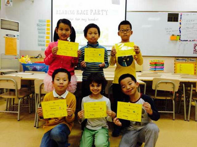 On the morning of Nov. 8, 2013, every grade 2 SHSID student participated in the award ceremony for the Reading Race Month winners. The students who read the most books during the month received the award and prize. Every student in grade 2 has developed the good habit of reading at least half an hour every day this month. All the teachers believe that this reading habit will benefit all the students in the future.