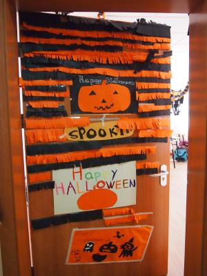 Halloween is one of the students’ favorite festivals. You could just feel the Halloween atmosphere when walking around in the Grade Five building. Pumpkins, skeletons, ghosts, and spiders were everywhere. The students brought them to school and carefully hung them up. Meanwhile, they started making colorful ribbons by themselves. They drew and painted all their great works, which showed their fertile imaginations. The homerooms looked like haunted houses with bloody doors and lots of spider webs. Welcome to the haunted houses in Grade Five! Enjoy the students’ creative ideas and have fun with us!