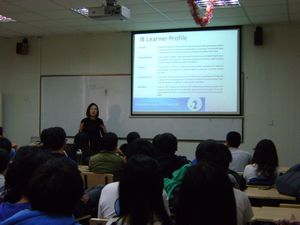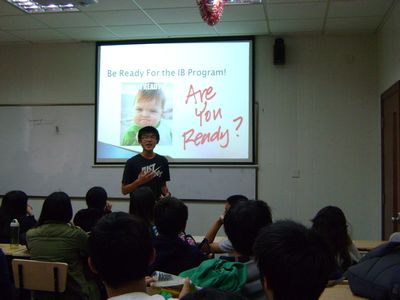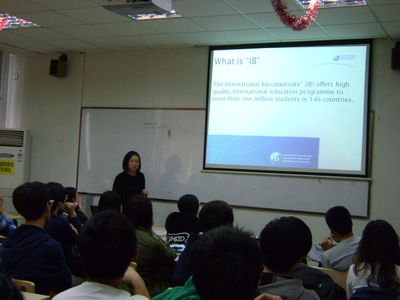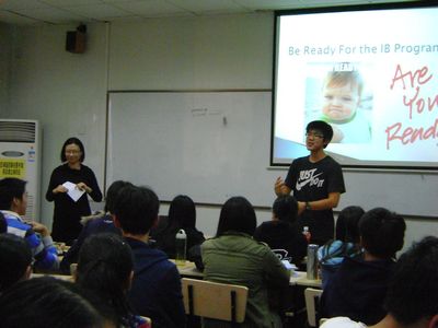 In the last week of October, students from grade ten were given a lecture about their future classes, the International Baccalaureate (IB) courses. The lecture was presented by the deputy IB coordinator Ms. Jiang Hao. She introduced the requirements for this program as well as its goals. Students should be thinkers, intellectual risk-takers, communicators, and seekers of knowledge. Later Daniel from grade 11 told them his experience, how he learned to manage his time wisely, and why he chose the classes he is taking now. After this lecture, many grade ten students seemed quite pleased with all the information they learned about their potential future courses.