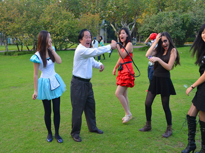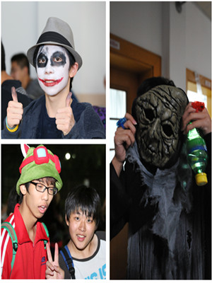 On Nov. 1, 2013, Grade 9 and Grade 10 students had a Halloween party in Zhongxing Building. The students wore dramatic, fantastic costumes, set Jack-o-lanterns alight, cast cotton spider webs everywhere, and hung luminous skeletons up to turn the classrooms into haunted houses, which triggered bursts of scream. Other activities included watching horror movies and the Greensward band, which made for a thrilling, fun night for the students.