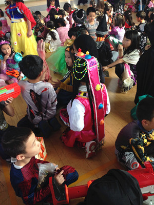 Pudong G4 students had a Halloween celebration on Tuesday. During snack time, they went trick-or-treating. During P&B class, they went to the gym where they had a costume competition. Some fun games were also arranged in the gym, and students really enjoyed participating in the games.