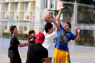 The most recent eighth grade basketball game was very intense. Every player observed his opponents’ tactics carefully. Everyone played hard for his class, while the other students helped to carry water, watched the game excitedly, and cheered for their favorite teams.