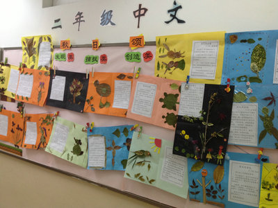 Fall has arrived and the world is beginning to get more colorful. The Grade 2 students wrote vivid articles to pay a compliment to this beautiful season and had a lot of fun collecting all kinds of fallen leaves. It gave them such joy to see the changing of the leaves from spring and summer green into the beautiful autumn reds, yellows, and browns. They glued their articles onto color paper, made fallen leaf collages in the margin, and completed a wonderful project.