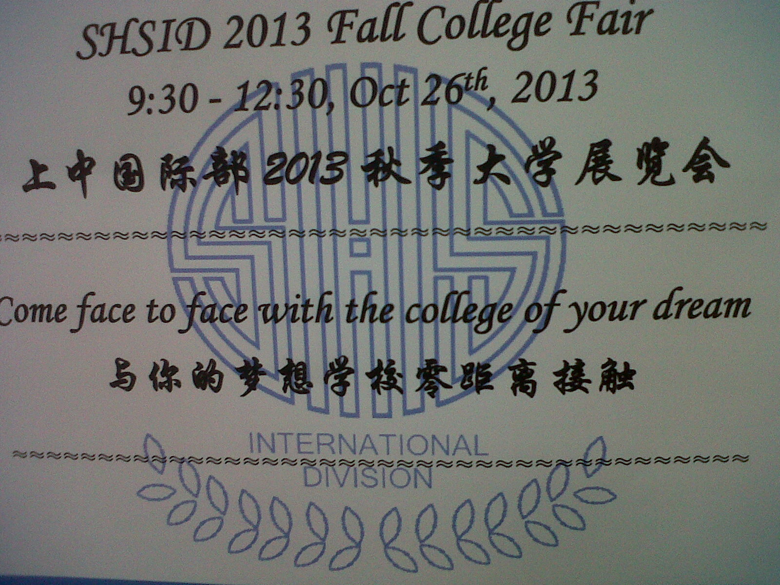 The SHSID 2013 Fall College Fair will be held on Oct. 26th. The admissions officer will do a presentation and hold a Q&A session for the students and the parents. The colleges represented at the fair include US Ivy League universities, famous European universities for the hotel management major, and some well-known universities from Asia and other locations.