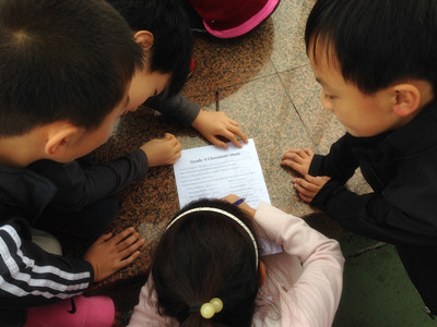 During CAS class, G4 students went outside to have a scavenger hunt. After searching randomly for a while, they started to search for certain items based on clues provided by teachers. The first team to find all the items on the form was the champion team for the scavenger hunt. It was a fun game, and it helped to promote feelings of friendship and cultivate better teamwork skills.