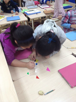 In recent math class, the Grade 2 students have been learning three movements of the shapes, namely a slide, a flip, and a turn. They have a solid grasp of these new concepts and had a great time applying them while playing with tangrams. They flipped, turned, and slid the small pieces of each tangram to make the required shape. The students seemed to derive quite a bit of enjoyment from completing the challenging ones!