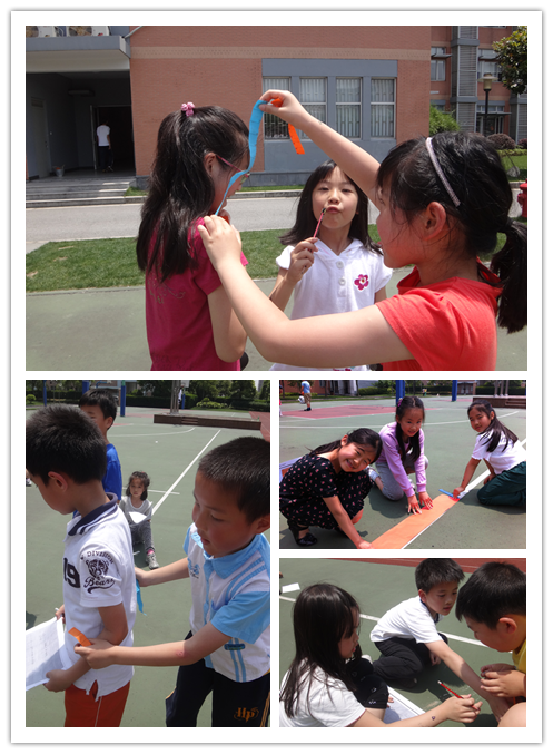 In Chapter 9 our second graders learned about the units for measurement, such as centimeter, meter, inch, foot, and yard. When they finished learning this chapter, they went around the school campus to measure different objects under their math teachers’ guidance. Students worked in groups to take measurements with inch rulers and yardsticks and recorded the data in charts. Everyone enjoyed this outdoor math class very much.