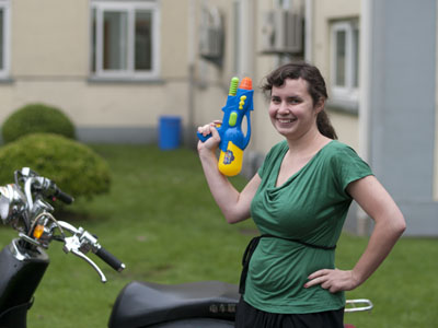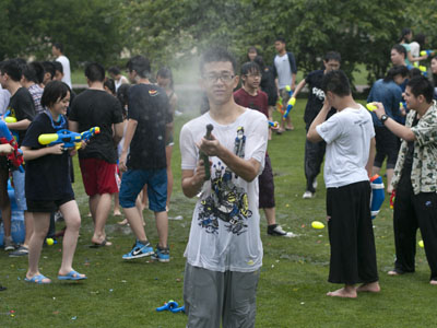 Summer Bash, the amazing game of Zhongxing Building, began on 3:30 p.m., May 31. The students, with great excitement, entered the battle field, Zhongxing Lawn. They fighted with others by water guns, water balloons, or even a bucket of water! Teachers and students got wet like drowned rats, but they really enjoyed the game. At about 6:00 p.m., they got back to Zhongxing Building, eating dinner and playing indoor games. The Summer Bash finally ended up by movie time. It was a little cold. Change your clothes and take care!