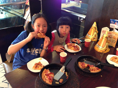 The Children’s Day is coming soon. In order to celebrate in grade, G4 had a field trip to the pizza hut to have a pizza party. Students first made a funny paper hat and they started to learn how to make a pizza by themselves. Actually, all the ingredients have been prepared and they just need to put them on the pizza. G4 students were so excited to eat the pizza and celebrate for the coming Children’s Day.