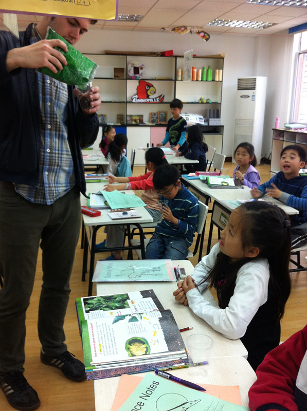 All secondgraders have a little competition about “See whose little seeds grow the fastest?”these days. Everyone is very excited about this. Under the supervision of the science teachers, every student put their seeds in soiland water individually, waitingfor their little seeds to grow.They are eagerto know whose seeds grow the fastest.