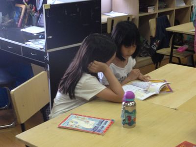 Third graders warmly welcomed their reading buddies, first graders during PG class on May 14. They read books and talked about their favorite things together. The big kids picked some suitable books for the young kids. How thoughtful they were. First graders read their own books to their big brothers and sisters. All these reading buddies enjoyed this activity. They were looking forward to having more reading buddies next semester.