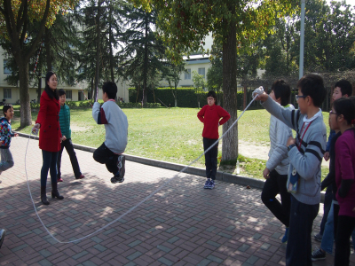 They rushed into the field during the lunch time. Every participant spent days on practicing. Some kids bravely overcame the fear of ropes and learnt to jump with the help of peers. It was the moment that they encouraged each other displayed their team sense. Grade Five students from Pudong campus also joined us and pull together to have fun.