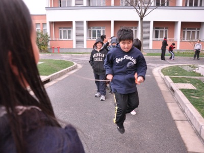 The Grade 5 students of both Pudong and Puxi campuses are going to have a long anticipated Jump-Rope Competition on week 5. The kids of Pudong started their practice recently. Though they have only a 20-minutes-practice after lunch everyday, though lots of them had never played this game before, though they are facing different problems, they all tried their best and enjoyed it a lot. Even some of the 4th graders were attracted and joined them. No matter what the final result might be, the competition is surely to be a good memory of the 5th graders.