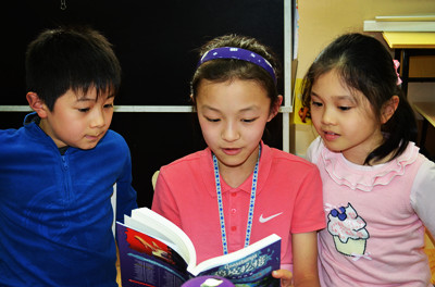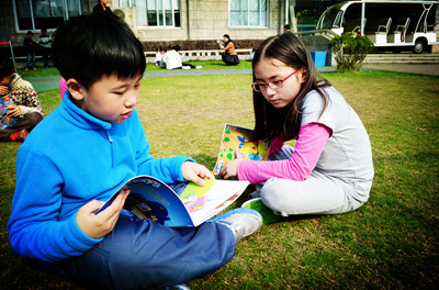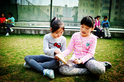 As the weather goes warm, the reading activity of this semester started again in our expectation. Except for the reading race, the most anticipated activity absolutely is reading buddy activities. It was a bright day and everything looks cheerful, the 4thgraders brought the 2ndgrade kids to the lawn which in front of primary building. They sit on the ground open the book selected by the 2ndgraders, vividly started reading the story. Every 4thgrader, even those who doesn’t like to read any book at other times, fully enjoyed that moment. Spring is coming. Let’s read under the tree!