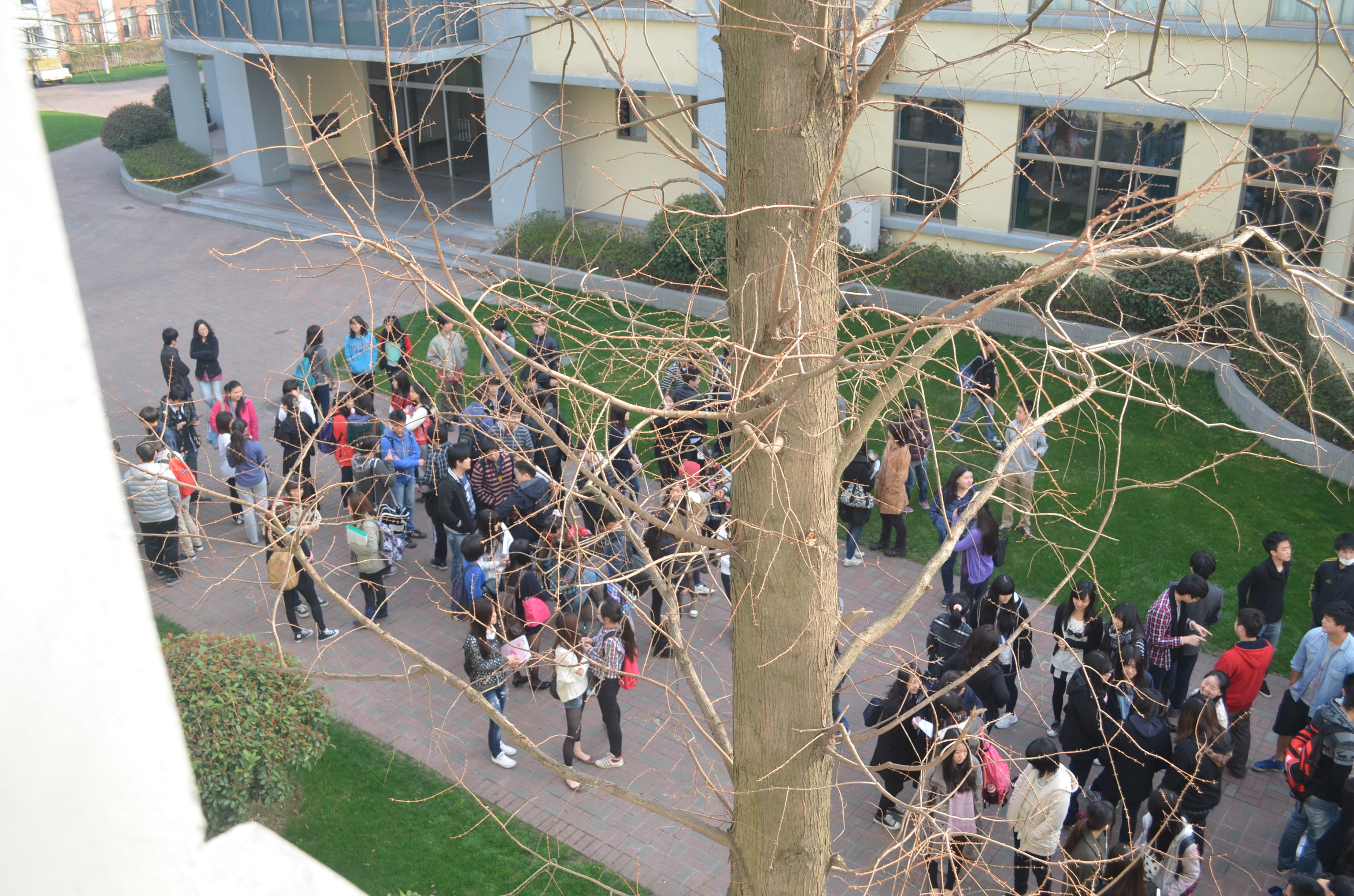 At 8:15 a.m. and 11:30 a.m., an alarm of evacuation began to ring!Run! Thanks to the class monitors, we succeeded evacuating to the gathering place.They helped the classmates very much.Every teacher didn't leave the classroom until confirming that every student evacuated to the gathering place.
