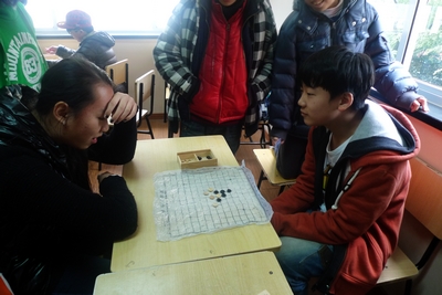 The 7th grade started a variety of extracurricular activities from the 2nd week of the new semester and the theme of this week is "Connect Five" competition. More than 50 students signed up for the competition and all the contestants spared their leisure time after lunch to this competition. So far, the second round is over and 12 contestants are going to compete for the final champion next week. Good luck to all the contestants.