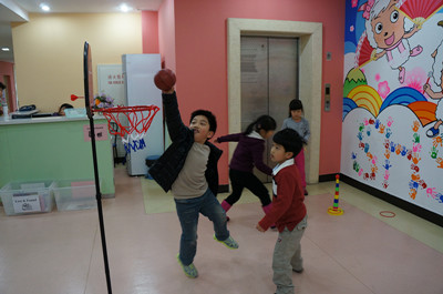 At the beginning of this semester, teachers bought some activity stuff to enrich kids’ noon time. Look! We have basketball stand, behind which it can also be used as a dart game. Whatever the weather is good or not, kids can still play basketball. This activity stuff is so great that kids can play two games at the same time, which is popular among boys and girls. Come to join us if you love sport!