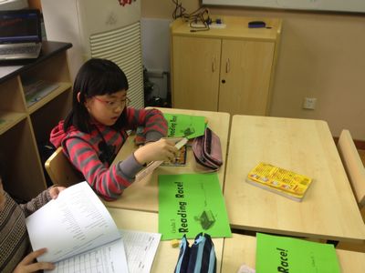 March is coming. The reading race has been held for the third graders. The target for them is to read books for 15 hours in total. They have made a plan to read half an hour everyday for the reading race then they will write down the reading log on their contact books. The third grade teachers required them to read English chapter books. Although it is a challenge for some of the students, everyone still enjoys reading and is eager to win in the reading race.