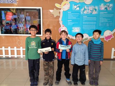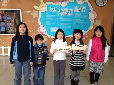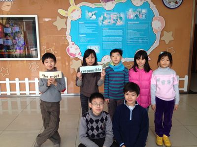 2013 has already come and our semster will be over in two weeks. The third graders chose the ten most of each class.We had 10 titles including the most hard working, the most responsible, the cutest smile, the most athletic, the most artistic, the greatest progress, the most friendly, the best behavior, the most helpful and the most humorous. The kids were very modest when they got those titles. All of us were very proud of them. Everybody should learn from them.