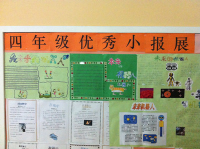 G4 Students learned a lesson named Robot during Chinese class. In order to show their interests in this lesson, they made a project after school. On the project, students should create a certain type of robot with introductions and pictures. What role does this robot play is also included in the poster. They put effort into the projects and made wonderful posters.