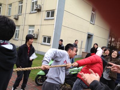 It is commendable to have such funny activity. We are about to enter the final exam sprint and look forward to our successful and happy ending of this semester with a tug-of-war enthusiasm.