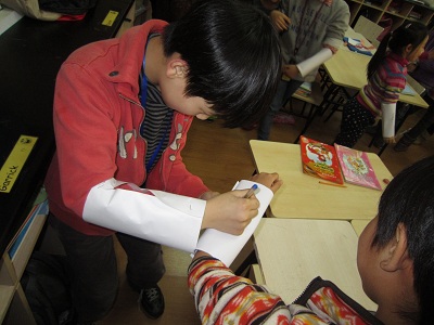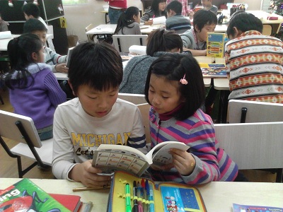 Recently, the 4thGraders and 2ndGraders are having “Reading Buddy” activity together. Every 4thGrader has one reading buddy from Grade 2. Start from this semester they will have reading one reading class per month together.