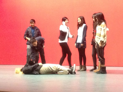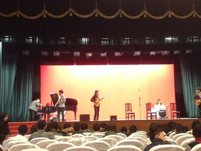 The audition of Grade 9-10 Art Festival was held in the Auditorium on Dec. 10th. Actually, this was also the rehearsal. Students from Grade 9 and 10 took an attentive part in the audition and there were over 50 items. Mr. Jiang and Ms. Hu were in charge and they gave overall consideration. ASB members were asked to judge the items and decided which could be on. The Art Festival will be held on Dec. 19th. Let's wait and see.