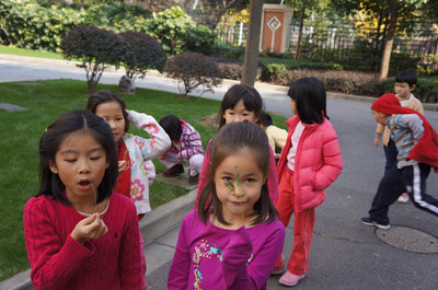 In Chinese class, we learned the lesson “Wind”. Some kids claim that they are also good at finding wind. So, we started an campus tour to find it. Look, they were working so hard! Then, we came back to the classroom and finished the poster of “Where Is Wind”.