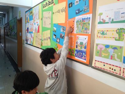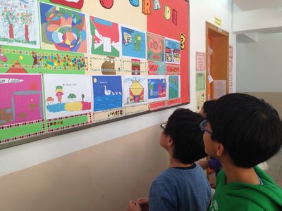 The third graders made some wonderful pictures during IT class. The topic was My Dream Land. They expressed their idea by imaginary. The best pieces of work were shown in the hall way. They voted for the best work and put a sticker below it. Next week we would know who got the first place.