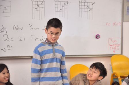 Pudong Campus had the G4-5 spelling bee competition final on Nov 26th, 2012. Two students from each class were chosen to compete in the Final. During the competition, some participants seemed to be nervous and some seemed confident. Finally, Ning from 5-2 won the game and got a nice gift! Every student cheered for all the participants!
