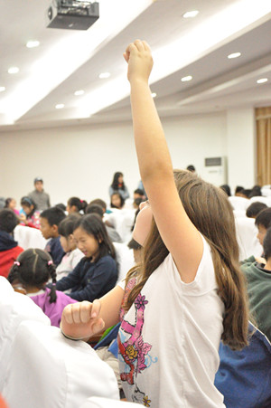 Pudong G4 students enjoyed a great show from school Rock Band during CAS last Friday. Distinguished guests were invited to give students a wonderful performance. They are Mr. A’s sister and brother in law. They are professional in music and they have a rock band inAmerica. They taught students how to make simple music by clapping and add the sound into the song "Down to the River Side". The performance was awesome and students had great fun in it.
