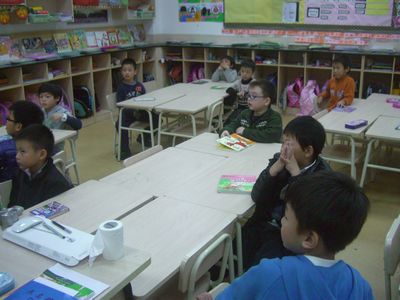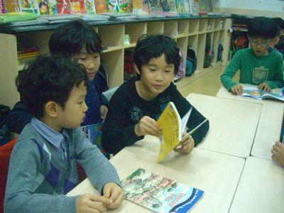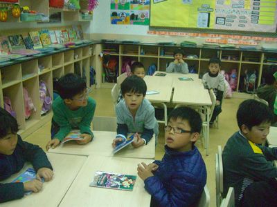 The First Graders came into the Third Graders' classrooms during Personal Growth Class. They made pairs as reading buddies. The Third Grader had chosen one of their favourite books to read to the First Graders. The First Graders read back to the bigger kids. Everyone participated in the exciting activity. They were looking forward to having reading buddies again soon.