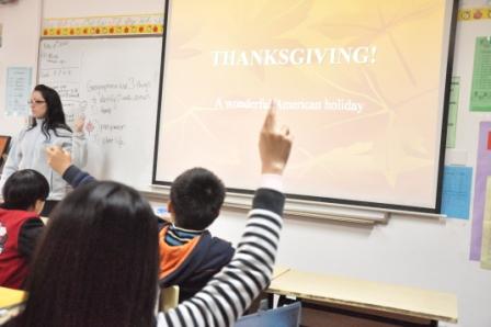 Pudong campus had a thanksgiving celebration during the P&B class on Nov 19th. G5 students watched a PPT and a video to learn about the origins and traditions of the thanksgiving. After it, we cut the tracing of our hands and wrote what we are thankful for. We stuck them to make the feather of a paper turkey. Everyone is looking forward to the coming festival.