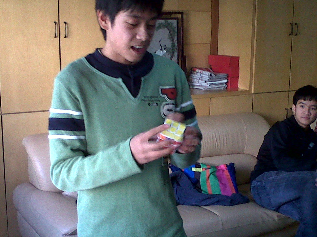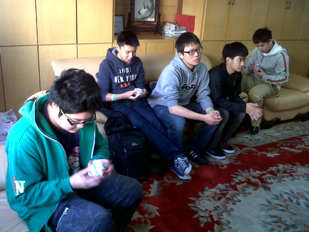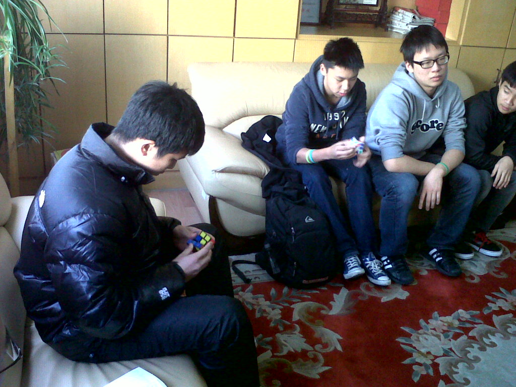 An interesting rubik's cube competition was held by Director Ma of senior high school section. A lot of rubik's cube players attended this game.The cube was brought by the player and puzzled by the others. Players were asked to recover the rubik's cube as soon as possible. Finally, Wang Pin Yi, a student from class 3 grade 11, spent less than 30 seconds and won the champion.