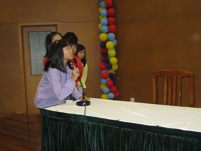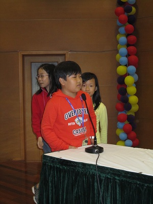 In the afternoon of this Tuesday, we held the annual spelling bee contest for Grade 3 and Grade 4 students. The defending champion Emily from Class 4(3) was also one of the candidates, which give lots of pressure to other candidates. After several knock out round, we only have Emily and Zi yang from Class 4(4) left on the stage competing each other. Finally, Gu Zi Yang from Class 4(4) won the last round by stability.