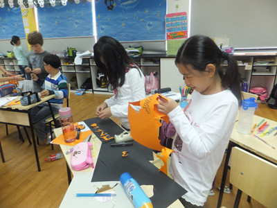 Pudong G4 students started to prepare for Halloween from the beginning of last week. Some students drew their own monsters and ghosts and hung them in the classroom. Some other students brought their decorations like fake spiders, fake bats and put those decorations in every corner in the classroom. They used their CAS class to make the class like a haunted house. G4 and G5 will have a class decoration competition during Halloween Day. The judges are from G4 and G5 ASB Groups.