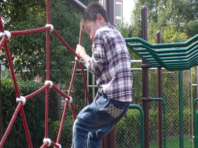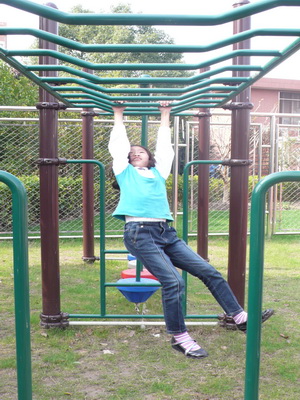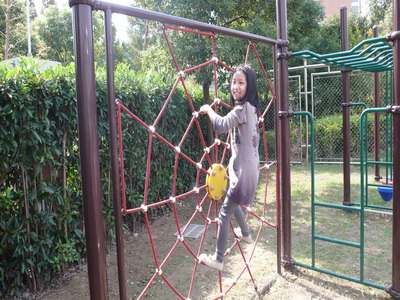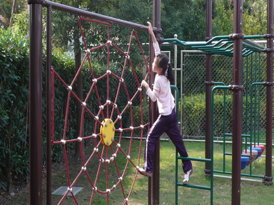 There is a jungle gym in the corner of the playground. We can play there during the lunch break. Grade 3 had a jungle gym competition this week. The students participating in the game should finish the “monkey bars” first, go across the “spider web”, and go up the stairs to slide down three slides, and cross the bridge last. If you participate in the competition, you will get a candy. Almost everyone likes the jungle gym. They might be afraid of it at first, but after they play in it, they will never be scared anymore.