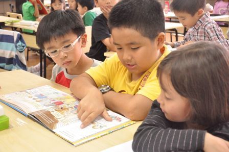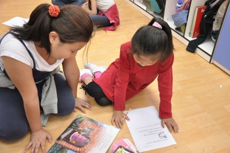 In the P&B class on Oct 18th, the G5 students had the partner-reading with G2 students. Some chose their favorite books and some chose the books for G2 reading levels and then read it to the little students. The G5 students explained the words to G2 students and answered their questions as well. G5 students love to do all these for the younger students.