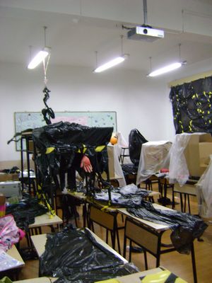 This Friday after school, the students of grade 9 enjoyed themselves in the big masquerade party in Zhongxing building to celebrate the coming Halloween. As black is one of the traditional Halloween colors and pumpkins are also a symbol of Halloween, students decorated windows of classrooms with silhouettes of witches and carved pumpkins into jack-o'lanterns. Students dressed in customs like pirates, princesses, ghosts and popular heroes, could not wait to rush into the ghost house to yell with a shivered and shook voice! It was truly an exciting evening to enjoy the pranks and Halloween:trick or treat!