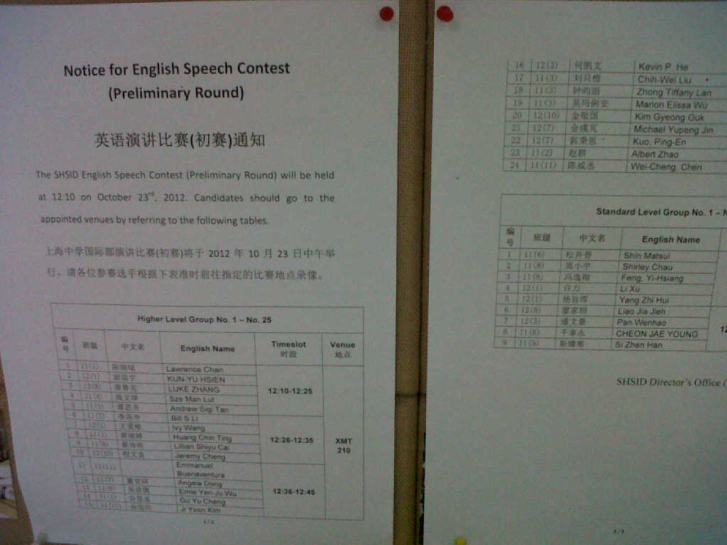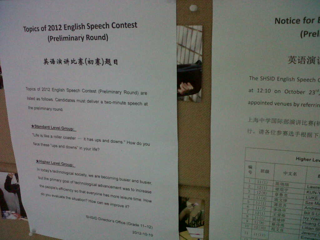 G11 Listed the Topic of English Speech Contest