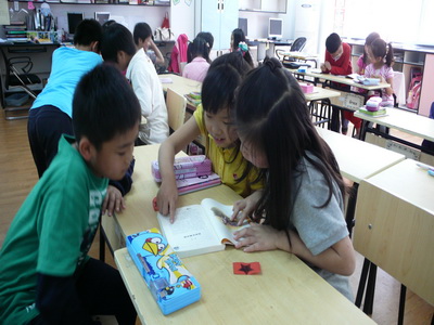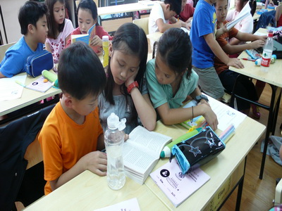 We had partner reading this week. There are three students in one group; two of them are from Grade 3, the other one is from Grade 4. We should answer the questions on a piece of paper after the partner reading. During the partner reading, never be afraid to disagree with your partners, and don’t read too fast because your partners might not know what is the word. If you have any question, you may ask the students from Grade 4. It is very fun, and this will help us to understand the book.