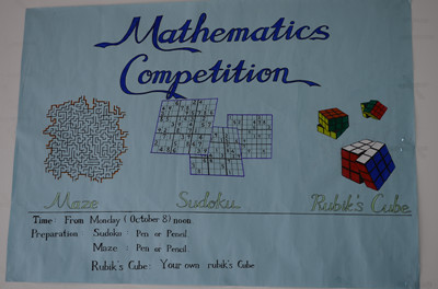 The math competition of grade 8 is now in full swing. Sudoku, Rubik’s cube and maze, each event has many active participants. The most popular one is maze with over 50 contestants. With a incredibly intricate maze on it, the competition poster has also attracted the attention of many students. We can often see two or three maze enthusiasts standing before the poster and discussing the possible solution. Who will be the champion? Let’s wait and see.