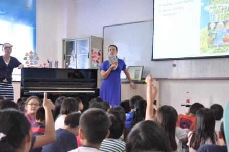 October is the reading month in Pudong campus. In the first P&B class in October, Ms Ren, our librarian, had a book recommendation class for G4 and 5 students. She introduced both English books and Chinese books. After her, the American homeroom teachers also introduced their favorite novels to the students. Ms Williams even read some parts from her book and students all loved it.