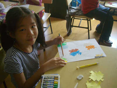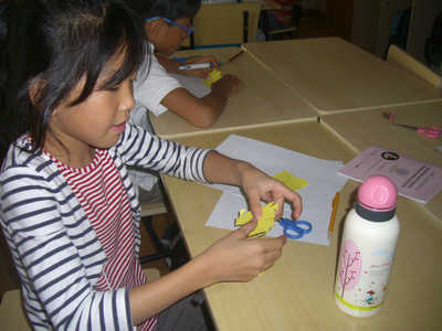 Art and Math are connected. It was very interesting to the 3rd graders. They were learning patterns during Math class lately. They also cut out a piece of paper and traced it on the white paper to make their own tesselations during Art class. There were no repeated work. Everyone's design was unique. They knew sometimes Math is Art too.