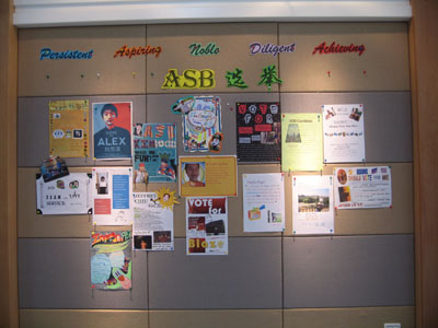 This week comes the G9-10 ASB Election. The excited candidates pasted their posters for election on Monday morning. The poster must be within A4 form, but there is no strict rule for the content of poster. Just take a look at the great creatures of the students, as I think they are really awesome. The exciting ASB election will begin on this Thursday. Just wait and see.