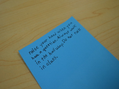 This week's personal growth grade three students wrote small tips for grade one students. We all wrote these tips for Grade One students in order to help them get used to new school life faster . Every tip has one sentence or two. That day, we made many tips on papers of different colors. When we finished the tips, our teachers put the tips in a purple jar, and gave it to grade one students.
