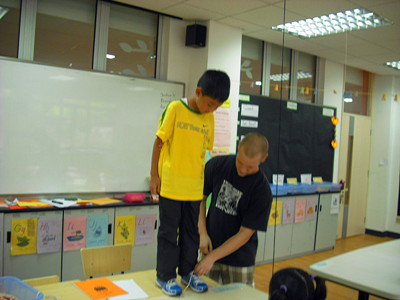 So far, we have found that there are only a few kids know how to tie their shoes. Therefore, we decide to teach everyone how to tie the shoes during personal growth class. There is even a song to help them memorize. After that, a shoe-tying competition was held to check if they have learned the skill. Finally, a girl won! Congratulations!
